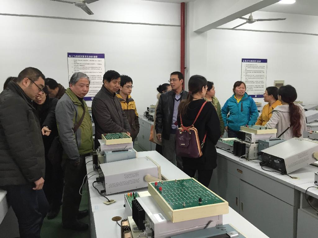 3月18日下午,我们又组织全体教师参观了南京航空航天大学金城学院实验中心, 中心张建兵主任等热情接待了我们。该中心主要承担全院所有基础实验课程、专业基础课程及部分专业实验课程的实验教学。实验中心为学院的直属单位,由学院教学副院长主管,实行主任负责制。目前实验中心主要包括电工电子中心、物理实验中心、计算机中心、多媒体教学设备管理中心4部分,承担全院所有学生的公共基础实验课程、专业基础实验课程及部分专业实验课程、工程实践型课程等教学任务。属于基本技能训练实验+综合型实验+创新型实验的实验教学体系;最大的特色是与企业签订了实习、实训基地,开展良好的校企合作,安排学生实习就业。通过和企业合作,开展横向课题,共同研发产品。座谈结束后,在张主任等陪同下参观了电工电子实验室。