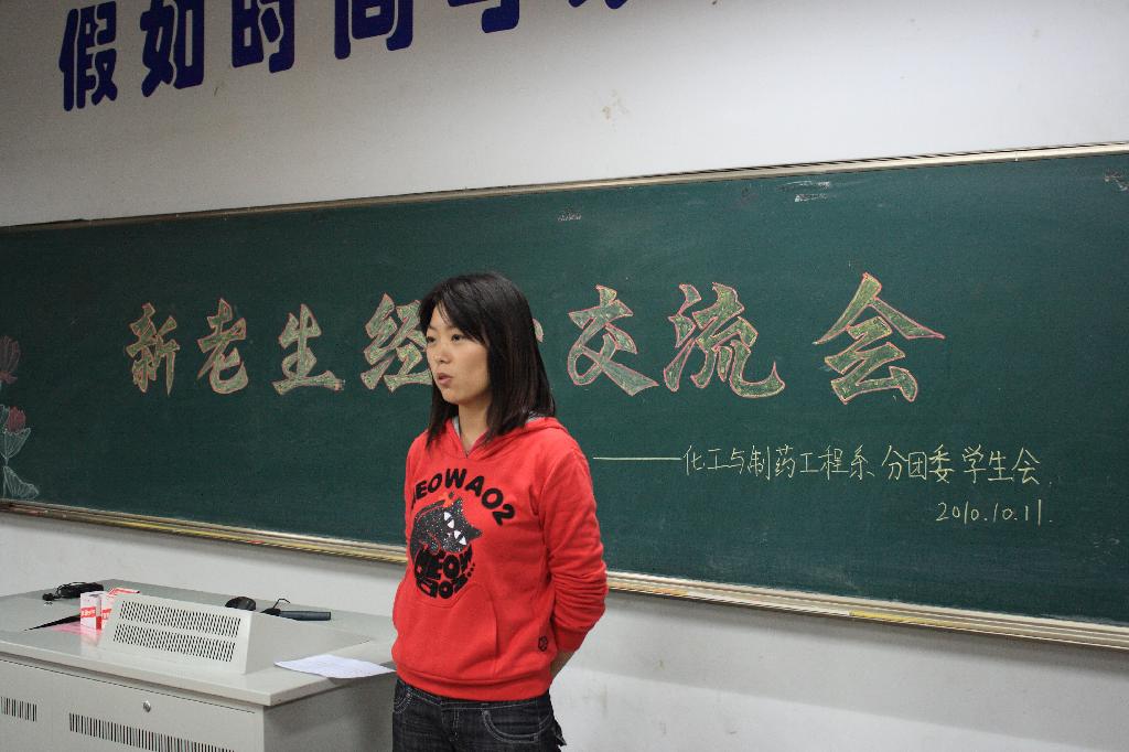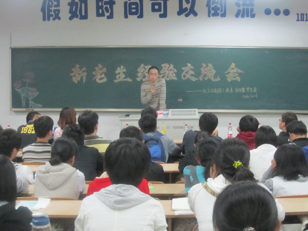 10月11日晚,化工与制药工程系于文昌院103举行10级新生交流大会。化工系学办副主任李平,分团委书记邵叶鑫,10级辅导员刘静老师,分团委、系学生会优秀学生干部及10级全体新生参加了本次大会。