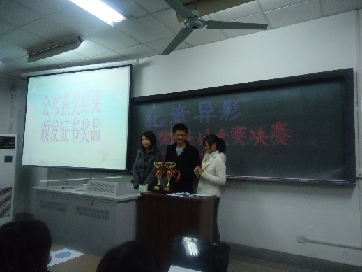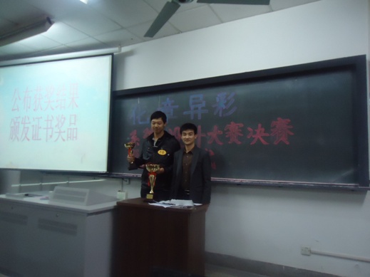 12月5日晚,化工与制药工程系“化章异彩”为主题的系徽设计大赛暨颁奖仪式在金坛院210举行,学办副主任李平,分团委书记邵叶鑫,10级辅导员刘静,分团委学生会及各班学生干部作为评委参加了此次大赛。大赛由分团委副书记张君严主持。
