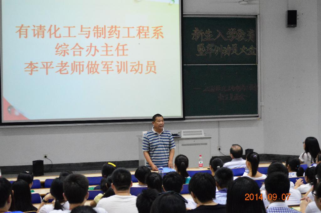 丹桂飘香,金秋送爽。9月7日晚六点,化工与制药工程系在文昌院114举办了14级新生入学教育暨军训动员大会。系党总支书记韩苏扬老师、综合办主任李平老师、14级辅导员刘静老师参与了本次大会。