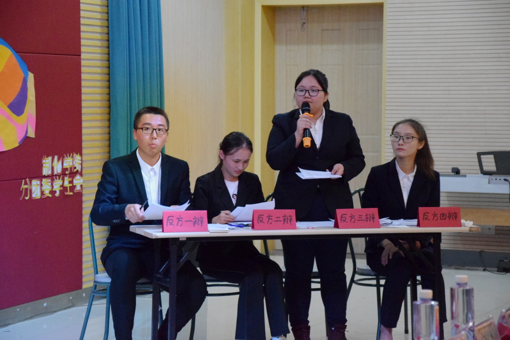 2018年10月22日晚18点,由制药与化学工程学院分团委学生会学习部举办的“坐看风云起,笑辩天下事”新生辩论赛决赛在大活307举行。莅临本次比赛的嘉宾和评委分别是分团委书记刘静老师、18级辅导员王宇老师、学生会主席卫婷,校辩论队前任队长黄瑶、现任队长赵紫芫、顾卓琰、罗春龙、院辩论队主力辩手陈思宇。