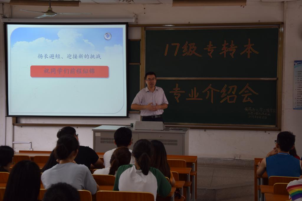 8月25日上午,我院化工系主任陆瞿亮老师主持召开专业介绍会,陆老师系统的向大家介绍了我院课程学习、就业方向、考研优势等基本情况,同时陆老师希望专升本新生也能够给制化院带来新的活力,不忘初心,砥砺前行,未来可期。