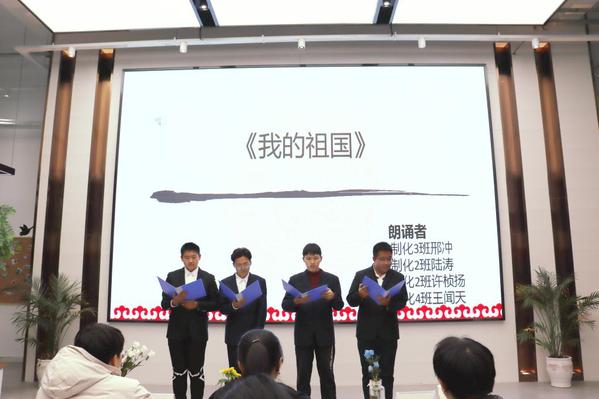 朗诵大赛活动开展时,同学们跃跃欲试,经过初赛后,最终有13名选手脱颖而出进入决赛,决赛现场,选手们以饱满的精神状态,声情并茂的朗诵了《祖国颂》,《我的祖国》,《我爱我的祖国》等经典文章,充分展现了制化学子热爱祖国,朝气蓬勃,奋发进取的精神风貌,同时也让观众们深受感染,不禁感叹70年来中国的辉煌历程。经过一番激励的角逐,秦心怡,郑诗佳,李岑熙小组凭借铿锵有力,琅琅上口的朗诵荣获冠军,邢冲,陆涛,许桢杨,王闻天小组获得亚军,侯含雪获得季军。