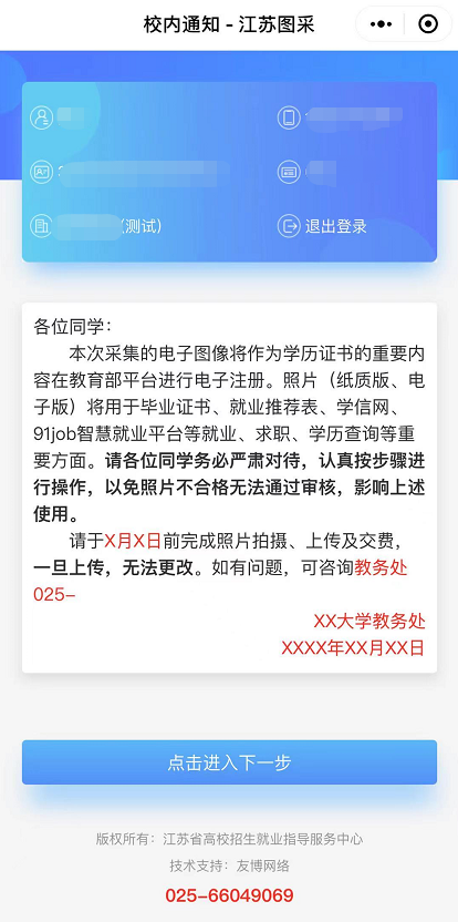 实名验证通过后,按步骤操作(如报错,可根据提示联系学校图采工作部门)