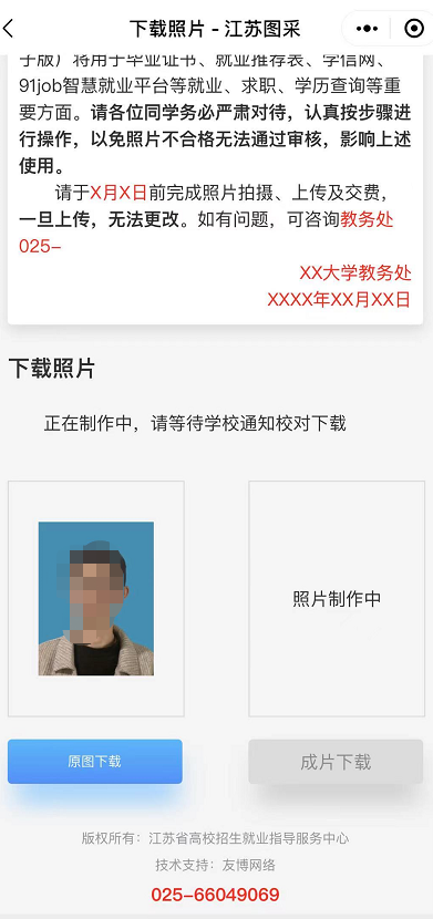 9)照片下载页,如系统已经制作完成,点击“成片下载”即可下载照片。