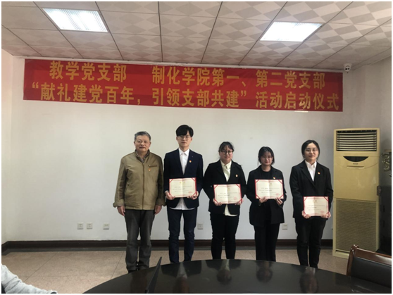 制化学院党总支副书记周继荣为第一批“班主任”和“学生活动指导教师”颁发聘书,并强调本次启动仪式只是一个开始,共建支部要突出党建引领,以共学促进交流、以共建推动实践,以更高的站位、更大的格局把共学共建路径探索好实践好,做到既高质量地完成党史学习教育这项当前的重大政治任务,又能够务实精准地为师生们办些实事。