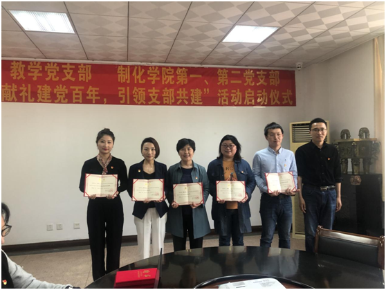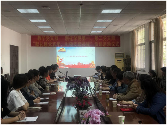 为深入贯彻落实习近平新时代中国特色社会主义思想,推进学习型党支部建设,打造党建与教风、党建与学风、党建与学生管理、党建与人才培养的多元化沟通交流平台,以优异成绩迎接建党一百周年,机关党总支教学党支部与制药与化学工程学院总支第一、第二党支部将组织开展“献礼建党百年,引领支部共建”活动。4月30日中午,共建活动启动仪式在真知馆105会议室举行。学校党委委员、副院长董梅芳,机关总支书记陈学建,教务处处长孟正大,制药与化学工程学院党总支副书记周继荣以及结对共建支部全体党员参加仪式。启动仪式由制药与化学工程学院党总支第二党支部书记、综合办主任刘静主持。