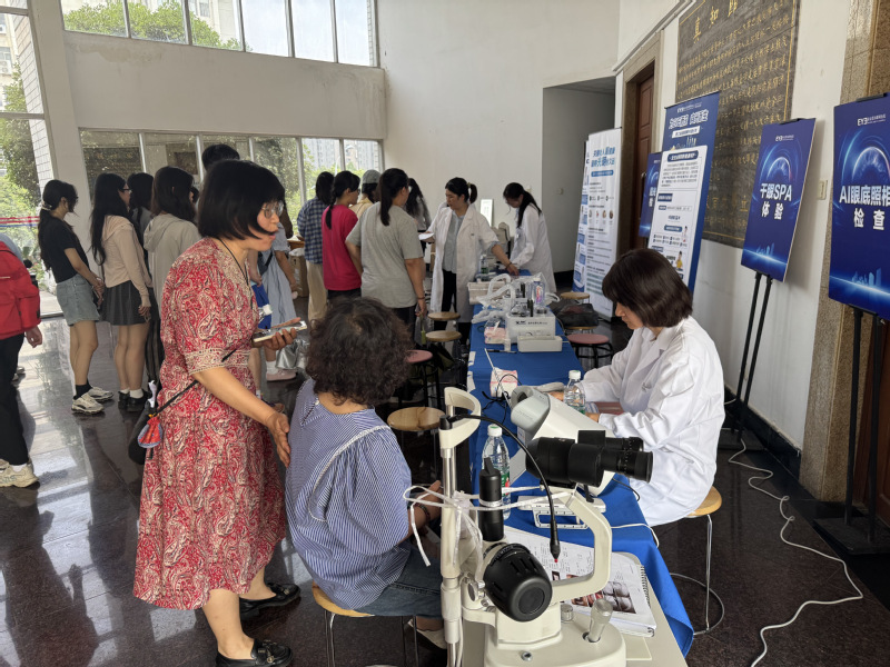 活动现场特别设置互动体验区,由南京爱尔眼科医院专家团队为师生提供全方位眼健康检查。通过专业视力筛查、AI眼底照相系统、裂隙灯检查等先进设备,为师生进行眼健康检查。针对教师群体普遍存在的干眼问题,现场提供干眼SPA体验,帮助缓解视疲劳症状。检查结束后,专家们逐一解读检测报告,提出个性化护眼建议。