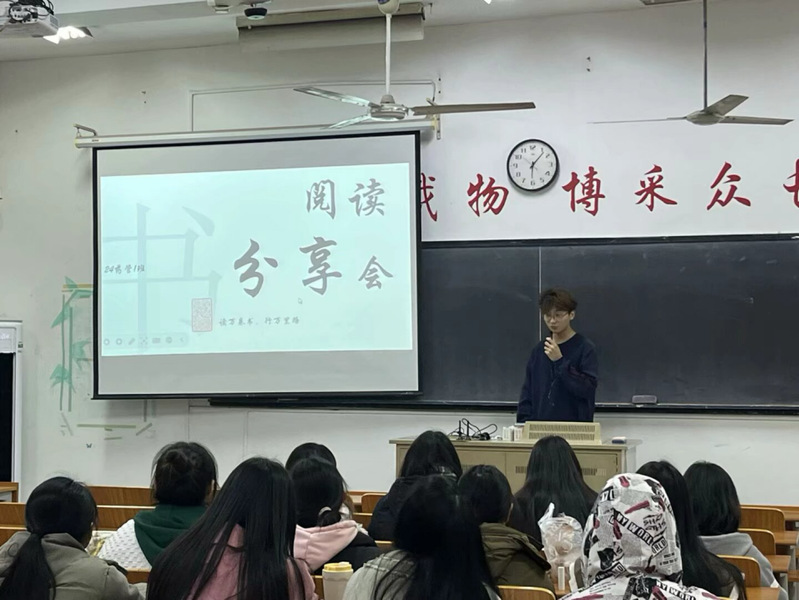 研学活动后,班级举办了读书分享会。团支书李宝龙以“文物是文明的形,书籍是文明的魂”导入,引导同学们展开讨论,现场氛围热烈而浓厚。活动中,同学们将阅读书籍与文物实证相结合:讨论《活着》时,联系农耕文物理解书中人物的生存智慧;分享《人间草木》时,结合文人书画感受传统生活美学;陈昊、姜诚磊等同学还分别将《白鹿原》《经营未来》与馆藏服饰、民族工业照片对照分析,实现“以文寻史、以史证文”。