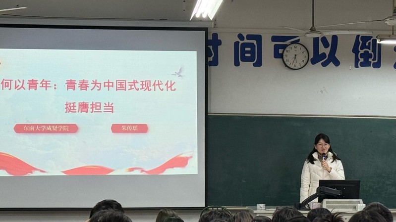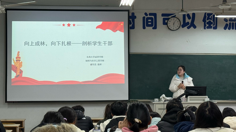 1225日,为提升学生干部的思想政治素养和工作能力,增强其责任感与使命感,制药与化学工程学院分团委书记朱传瑶以“何以青年:青春为中国式现代化挺膺担当”为主题开展讲座。朱老师以“膺”字释义破题,结合先辈们以身许国、挺膺负责的感人事迹,深刻诠释了新时代青年“挺膺担当”的精神内核。她还直面学生干部工作误区,明确 其“学生”与“干部”的双重定位,细致讲解高效务实的工作方法,循循善诱地引导学生骨干树立扎根同学、服务集体的意识。