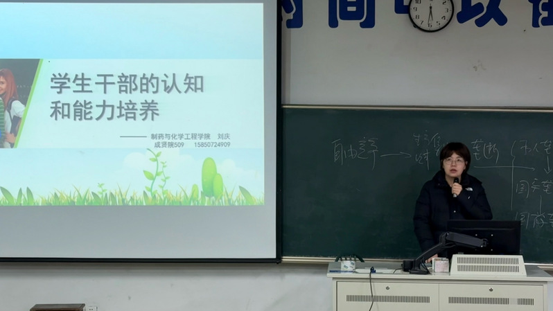 12月25日,为提升学生干部的思想政治素养和工作能力,增强其责任感与使命感,制药与化学工程学院分团委书记朱传瑶以“何以青年:青春为中国式现代化挺膺担当”为主题开展讲座。朱老师以“膺”字释义破题,结合先辈们以身许国、挺膺负责的感人事迹,深刻诠释了新时代青年“挺膺担当”的精神内核。她还直面学生干部工作误区,明确 其“学生”与“干部”的双重定位,细致讲解高效务实的工作方法,循循善诱地引导学生骨干树立扎根同学、服务集体的意识。